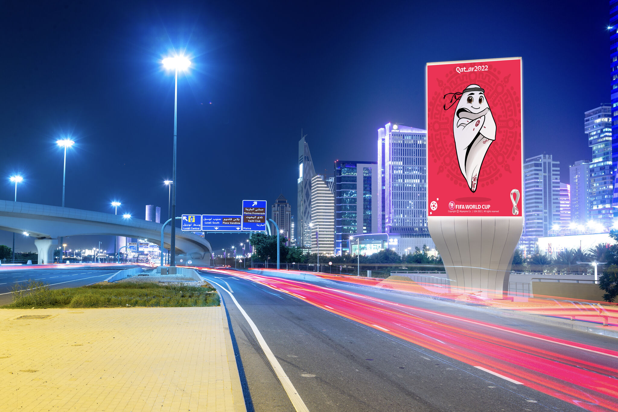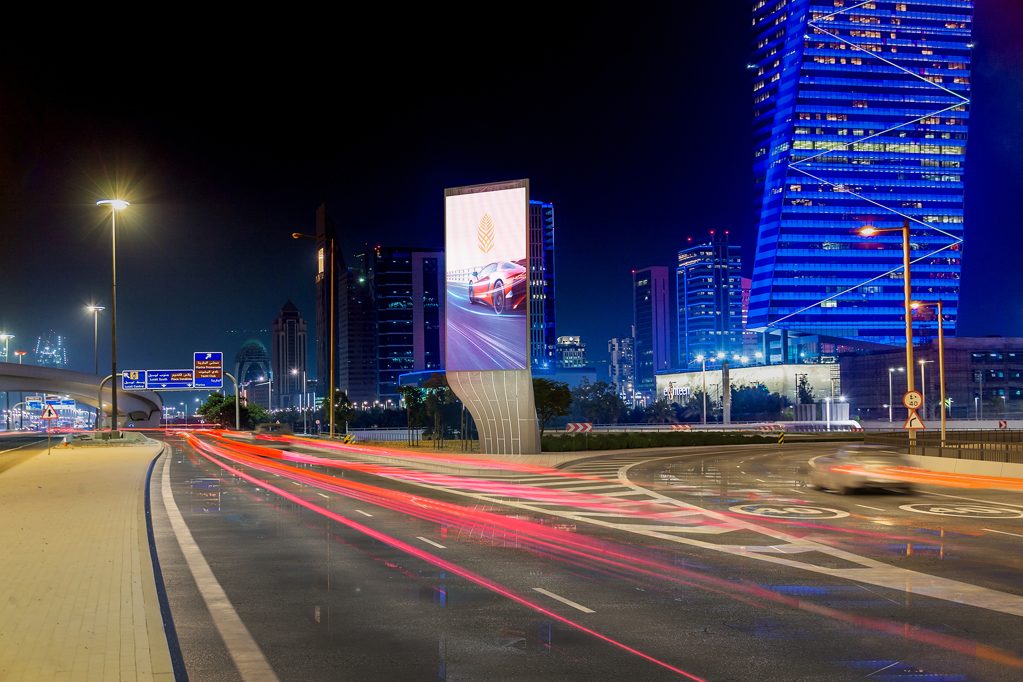 The Boulevard and Gateway Totems designed by Rainlight for ELAN Media, Qatar’s leading OOH advertising agency, for the city of Lusail. ELAN Media completed the large scale out-of-home advertising network in the iconic Lusail City ahead of FIFA World Cup Qatar 2022™